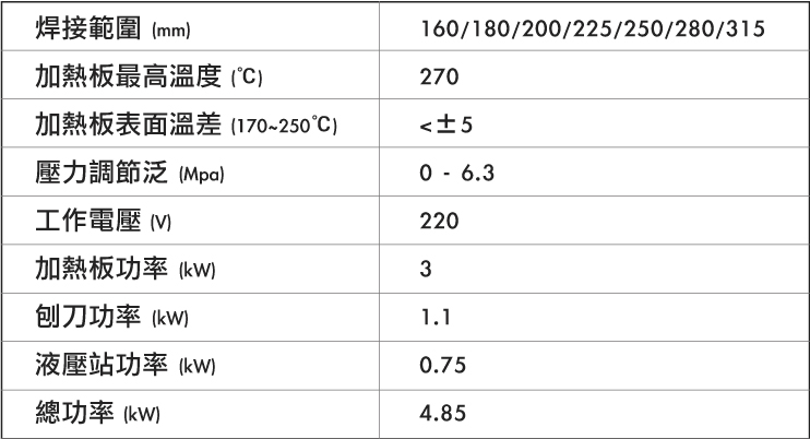 首頁 > 產品資訊 > 油壓式 熱熔對接機(315)